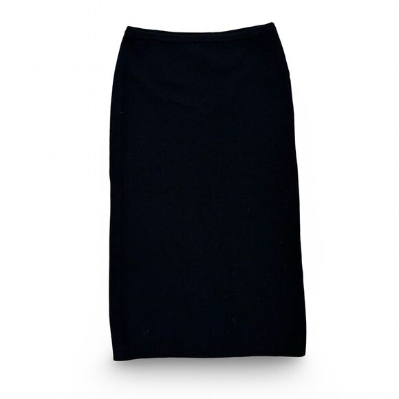 Vtg BHS Lambswool Black Pencil Skirt Women's Size 10 Made in Macau Knit Midi