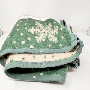 Vtg BIEDERLACK Green Beige Snowflake Cuddle Wrap Blanket Snap Zip Up 52” X 66”