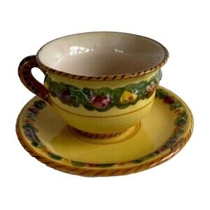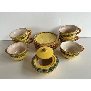 Della Robbia, Italian, tea service, yellow, majolica, espresso, siesta, vintage