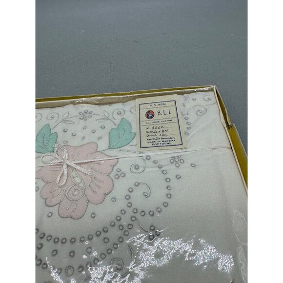 Vtg BLI Cotton Embroider Tablecloth Floral Pattern Original Box Portugal READ