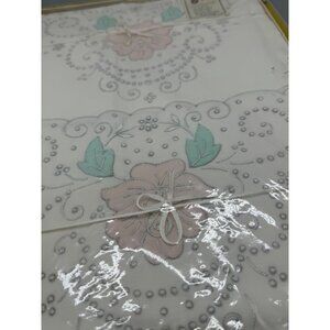 This vintage tablecloth features intricate embroidery with pastel floral patterns, made from pure cotton. Ideal for enhancing dining aesthetics.