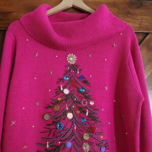 Vtg BP Design Christmas Tree Sweater Embellished Beaded Flashy Colorful Large