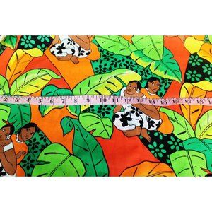 Vtg BTY Colorful Hawaiian Polynesian Leaves Women Tropical Tiki Fabric Peter Pan