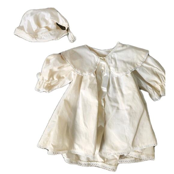 Vtg Baby Christening Dress & Bonnet Baptism Lace Trim Puritan Collar Handmade