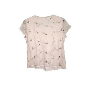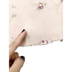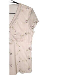 Vtg Baby Doll Top Women L Pale Fairy Y2K Top Lettuce Hem Cottagecore Mesh Floral