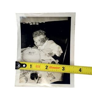 Vintage Baby First Birthday Cake Original Monochrome Photo Black and White Found Snapshot 4.75 x 3.5 in Portrait.