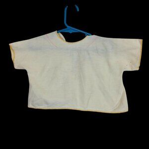 Vtg Baby Flannel Open Jacket Hand Embroidered Elephants Crocheted Edge Yellow