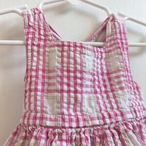Vintage Baby Gap pink and cream plaid seersucker pinny dress. Size 3-6m