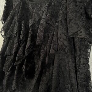 Vtg Babydoll Witchy Lace Top Womens 1X Black Ruffle Fairygrunge Whimsigoth Shirt