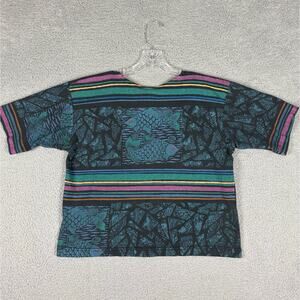 Vtg Bacio Top Women’s Medium Multicolor Fish Print Crop T-shirt USA 80s 90s