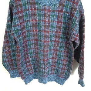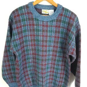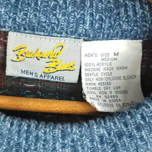 Vtg Backyard Blues Sweater Men's Med Blue Red Long Sleeve Pullover Grandpacore