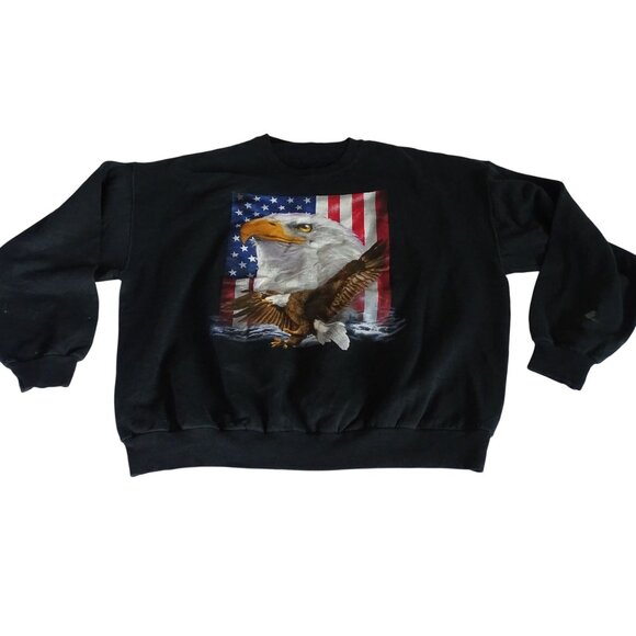 Vtg Bald Eagle American Flag Graphic Black Crewneck Sweatshirt Men Size XXL FLAW