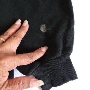 Pre-owned...There are what I believe to be paint stains on the shirt. The graphic has some cracking. See last 4 pictures
