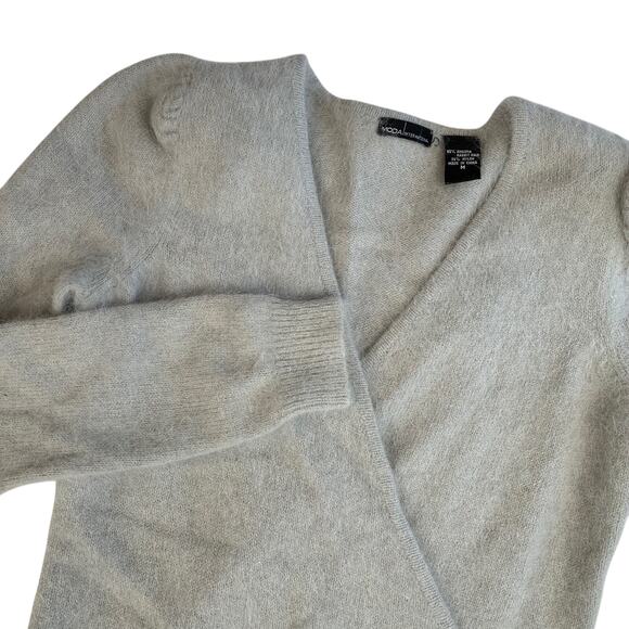 Vtg Ballet Faux Wrap Sweater Angora Blend Women M Gray Moda Int’l Soft Fuzzy