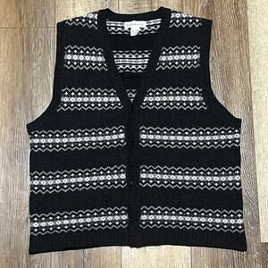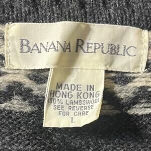 Vtg Banana Republic 100% Wool Fair Isle Sweater Vest L Button Down Nordic Preppy