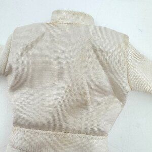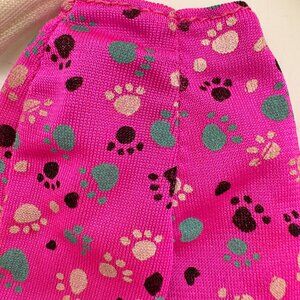 This vintage Barbie pet doctor outfit includes a white jacket with heart cat print and pink leggings with paw prints. A collectible from Mattel's 1996 collection.