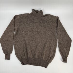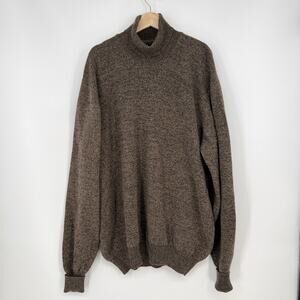 Vtg Barbour Wool Cashmere Turtleneck Sweater Mens XXL Brown Black Rolled Cuff