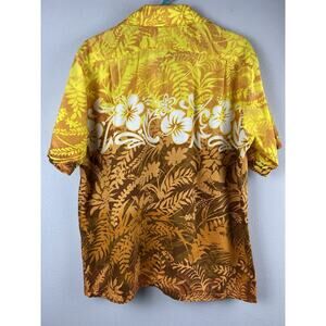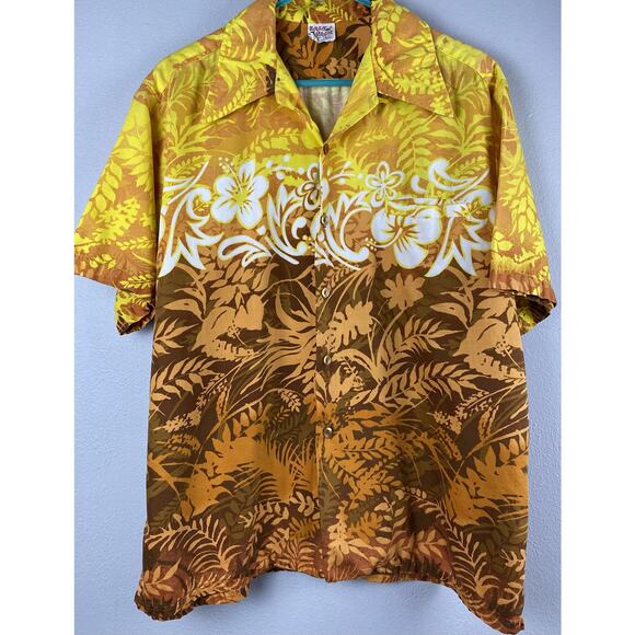 Vtg Barefoot In Paradise Mns L Hawaii Bright SS Shirt Button Up Dagger Collar. Measurements shown in photos. Brown, yellow, orange and white. Made in Hawaii