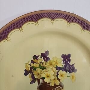 Vtg Baret Ware Tin Plate 10" Made in England Primroses & Violets Floral