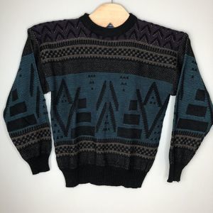 Vtg Barnaby Men's Large Black Green Abstract Print 80s/90s Knit Acrylic Sweater