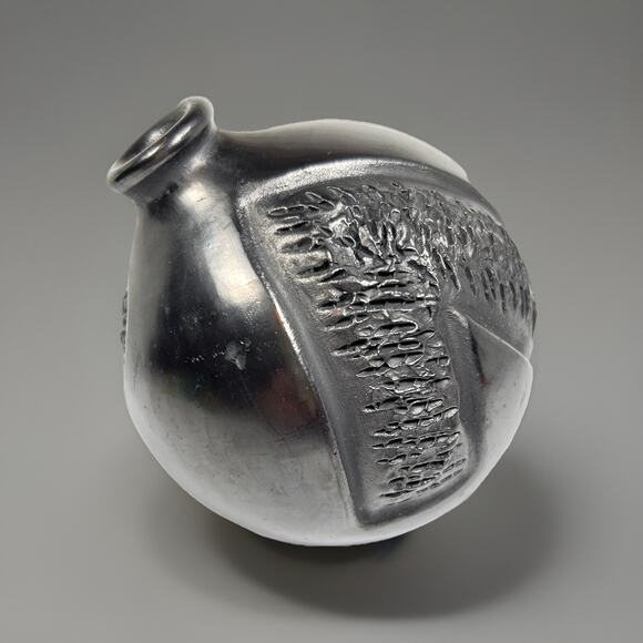 Beautiful vintage piece of signed Mexican black pottery by Dona Rosa 1900-1980. Piece is a tilted vase with some textured accents, black shiny pottery. Piece is signed and has the #1 on it. I don't know if that means the first piece of this kind, I researched and could not find an answer.