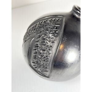 Vtg Barro Negro Vase by Doña Rosa Signed Black Pottery Mexican Folk Coyotepec