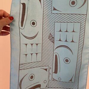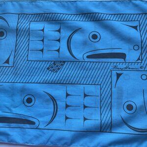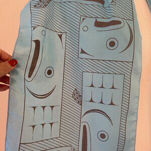 Vtg Barry Herem Scarf Blue1979 Northwest Coast Native Design Pacific 11 x 54”