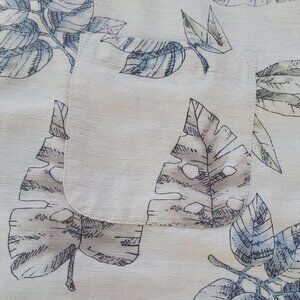 Vtg Batik Bay Mens Silk Hawaiian Shirt M Palm Leaf Print Beige & Blue Vacation