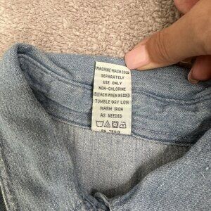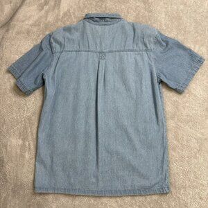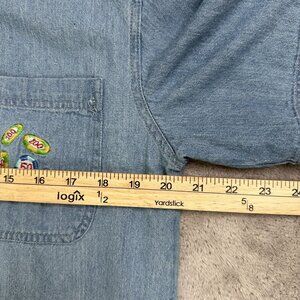 Vtg Bay Beauty Women's Las Vegas Denim Button Up Shirt Shoulder Pads XXL Blue