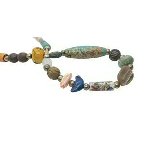 Vtg Bead Necklace Native Boho Fetish Heishi Scarab Shell Wood Murano Coral