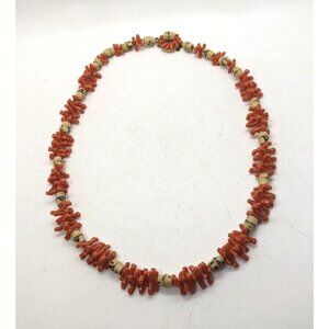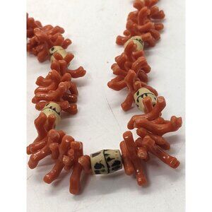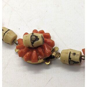 Vtg Beaded Necklace Faux Coral Orange Beads Western Germany Round Box Clasp 24"