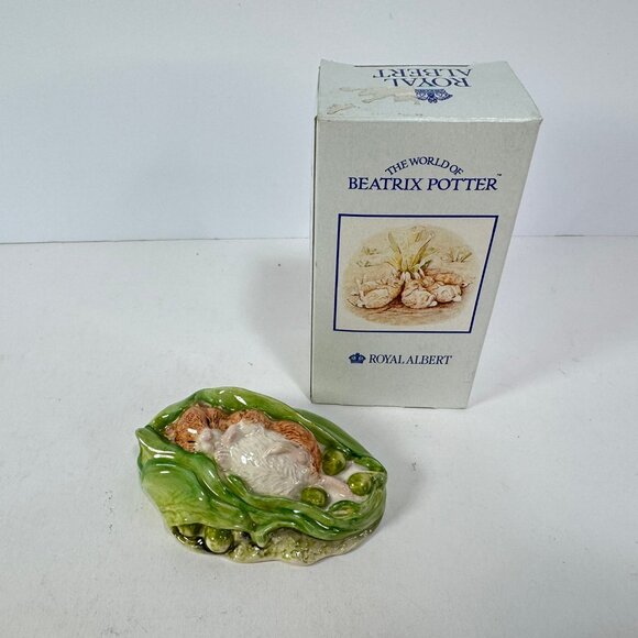 Vtg Beatrix Pottery Timmy Willie Sleeping Pea Pod Porcelain Figurine 1989