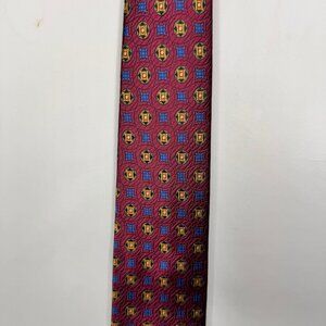 Vtg Beau Brummel SOHO Men’s Neck Tie 3 ½” Maroon Blue Gold Geometric 100% Silk