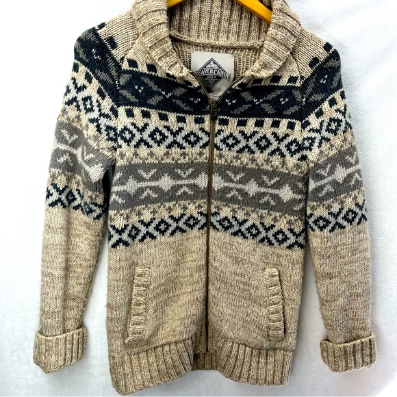 Vtg Beaver Canoe Fair Isle Wool Blend Cardigan Sweater Men XS/Women Med Outdoor
