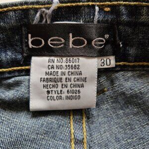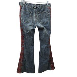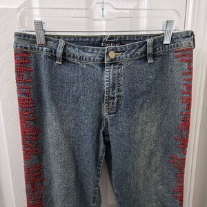 Vtg Bebe Flare Jeans Womens 30 Red Embroidery Grunge Punk Goth Y2K Low rise Boho