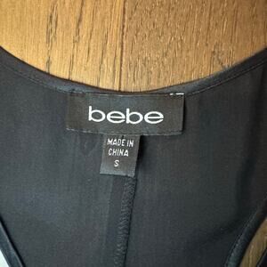Vtg Bebe Y2K Silk Tank Top S Black Ivory Sequin Embellished Plunge V-Neck