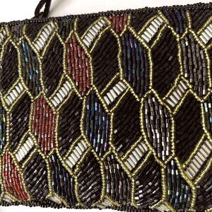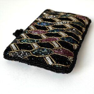 Vtg Bechamel Glass Beaded Makeup Mini Bag Geometric 80s Glam Weddings Gift