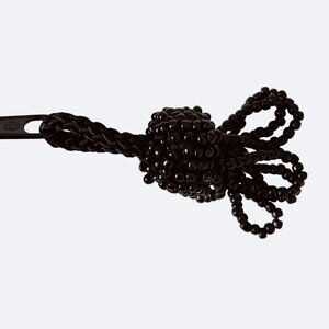 This handcrafted makeup or small clutch bag features intricate beading in a geometric pattern, creating a visually striking accessory. The clutch includes a secure zipper closure and a beaded knot detail, offering both style and functionality.