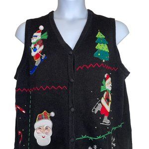Vtg Bechamel Plus Size Cardigan Sweater Vest Womens 1X Christmas Santa Holiday
