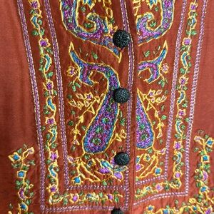 Vtg Beliza ladies embroidered detail with buttons long sleeve button up size M