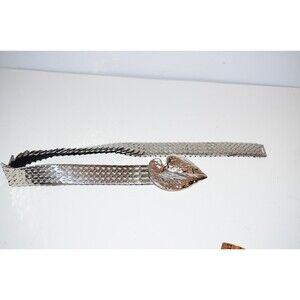 Vtg Belt Womens Elastic silvertone reptile scales 80s Boho Stretch 24- 32" waist