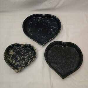 Vintage Bennington Pottery Vermont Set of 3 Heart Shaped Dishes 1948,1949,1950