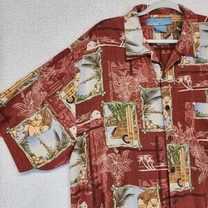 Vtg Bermuda Bay Hawaiian Silk Shirt Size XXL Floral Tropical 90s All Over Print