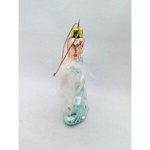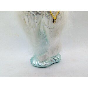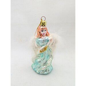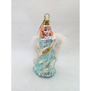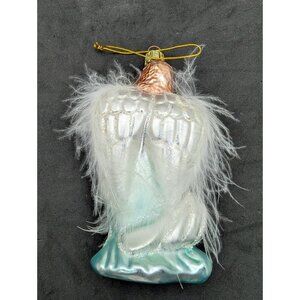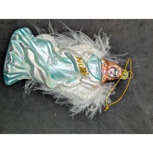 Vtg. Best Santa Christmas Ornament Angel 'NOEL' Glass Angel faux Feathers 5.25”