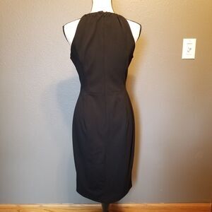 Vintage Betsey Johnson Womens Size 8 Dress Knee Length Back Zip Lined Sheath Black Crepe Halter LBD Gothic Classic Edgy