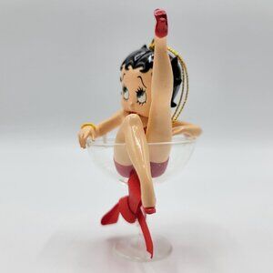 Vtg Betty Boop Ornament In Cocktail Glass With Red Bow Christmas Holiday Decor