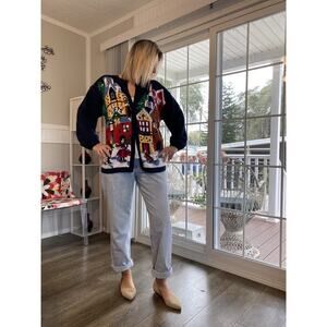 Vtg Birch Bros Holiday Christmas Sweater Cardigan Women's Multi-Color Graphic M