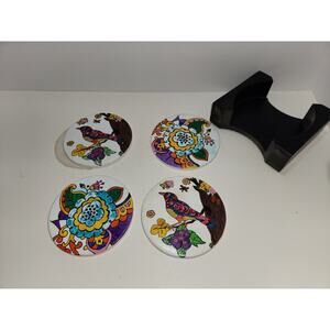 Vtg Birds & Flowers Coasters 4", Set of 4.