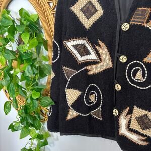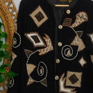 Vtg Allure Black Cardigan Beaded Sequin Geometric Statement Sweater | Dark Autumn
