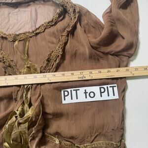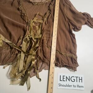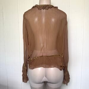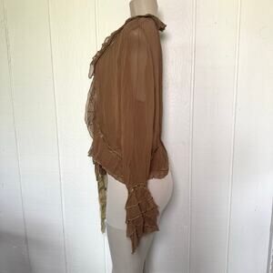 Vtg Black Cat Fashion Sheer Ruffle Blouse Silk Blend Y2K Fairy Boho Festival L